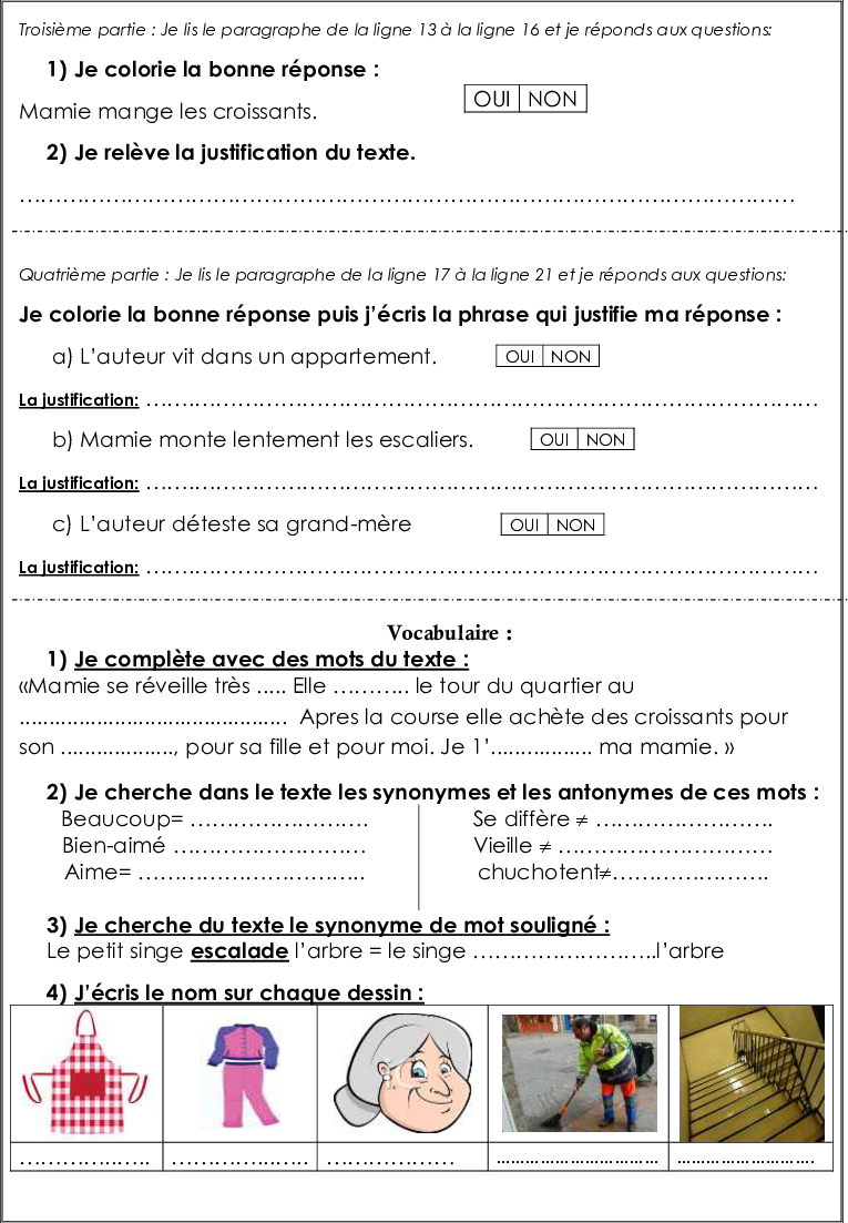 fiche eleve texte mamie